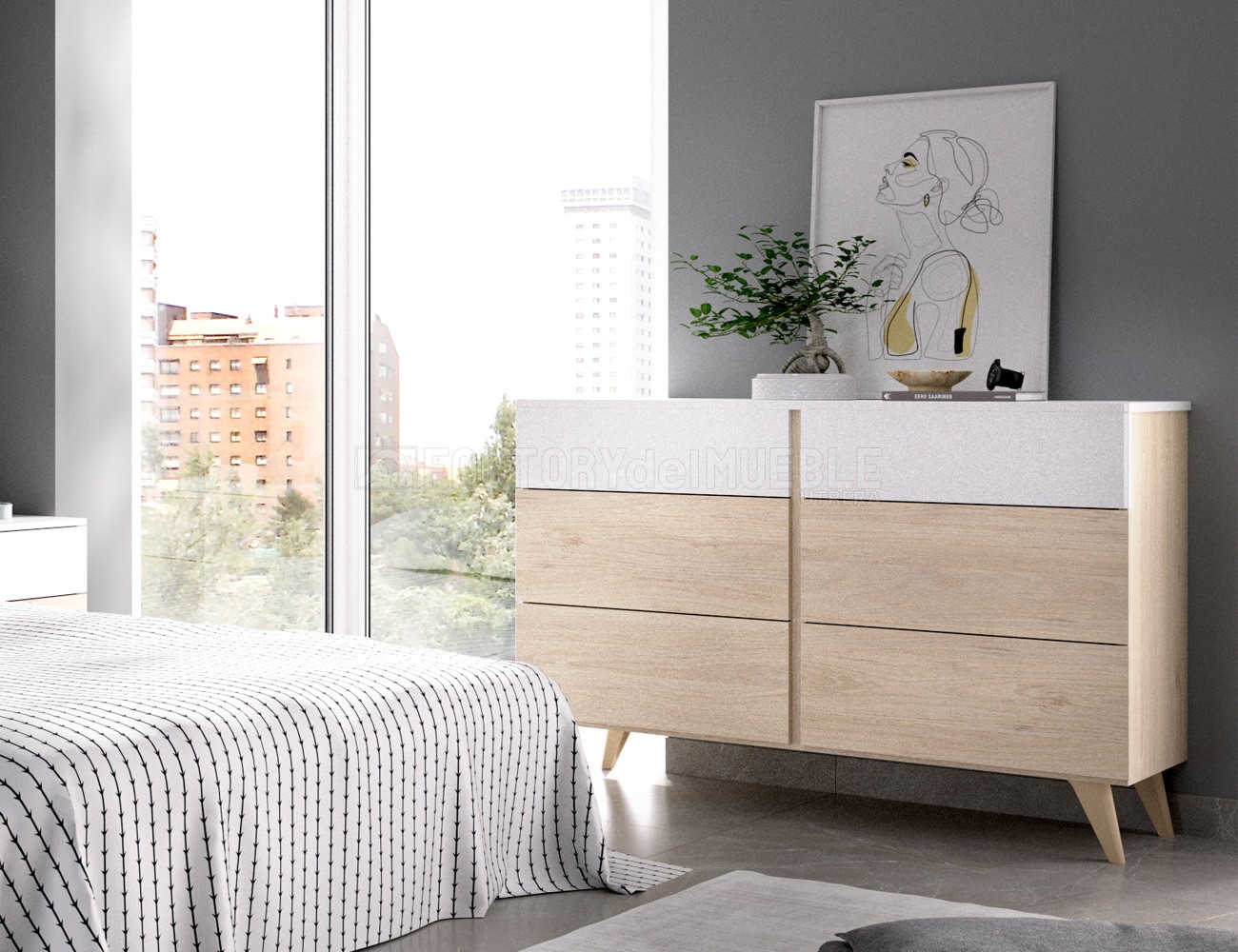077 Cómoda en madera natural de estilo nórdico con bancada recta Comoda 6 cajones con patas estilo nórdico (30488) | Factory del Cómoda de Estilo Nórdico Colección SQUARE Blanco